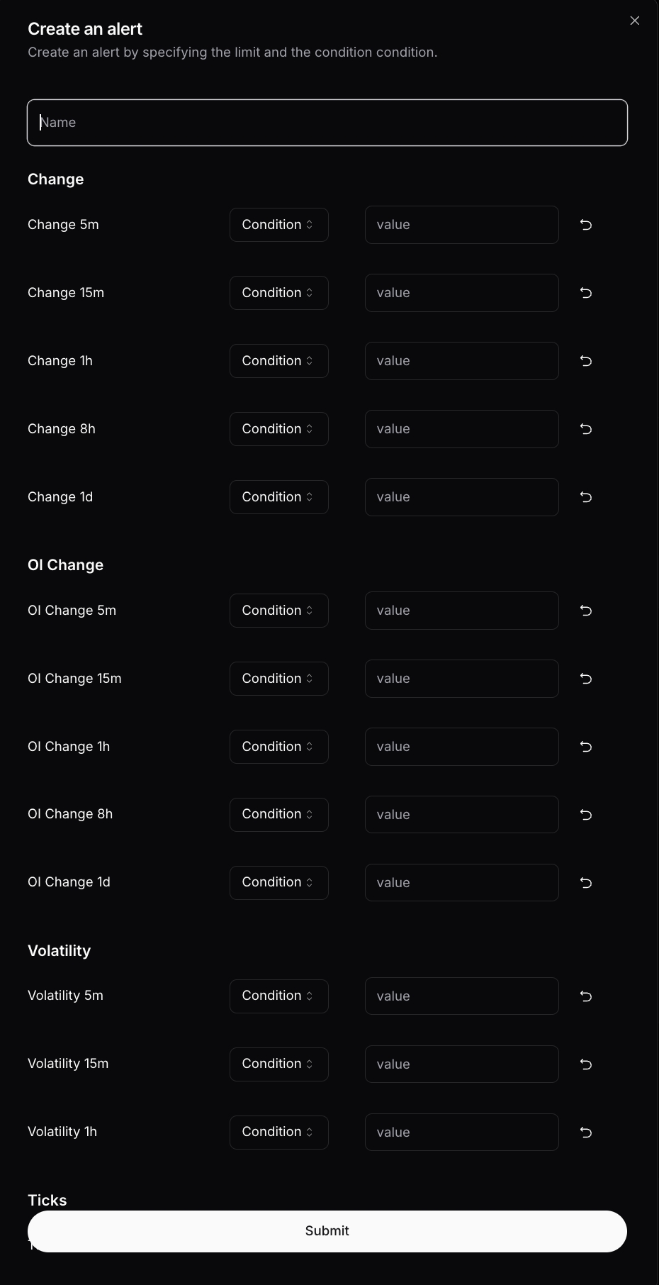 Кастомные алерты — одна из самых сильных функций ErkeScan. Она позволяет настроить персональные условия, по которым вы будете получать уведомления прямо в Telegram, как только на рынке произойдут события, важные именно для вашей стратегии.